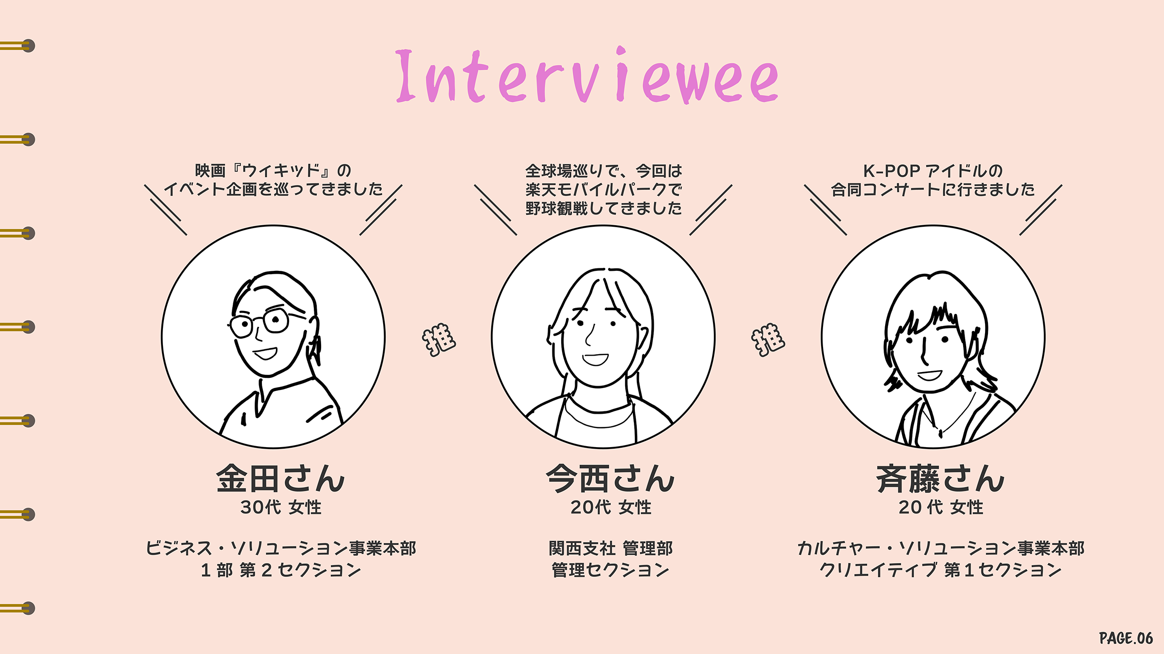 後編でお話を伺ったのは、今西さん、金田さん、斎藤さんの3人。それぞれが夢中になっている「推し活」を語っていただきました。