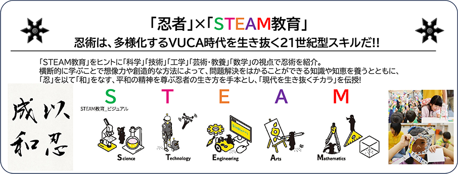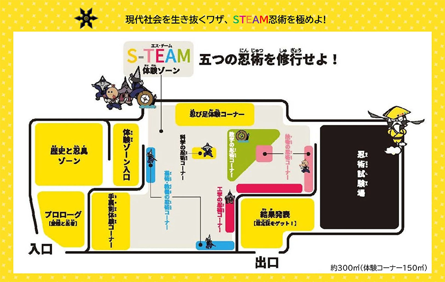 ムラヤマは、そんな「忍者」と現代の教育環境でも広く一般的となった「STEAM教育」を掛け合わせ、謎に満ちた存在の忍者や忍術を最新の研究や科学的な視点で明らかにした「シン・忍者展」を制作しました。