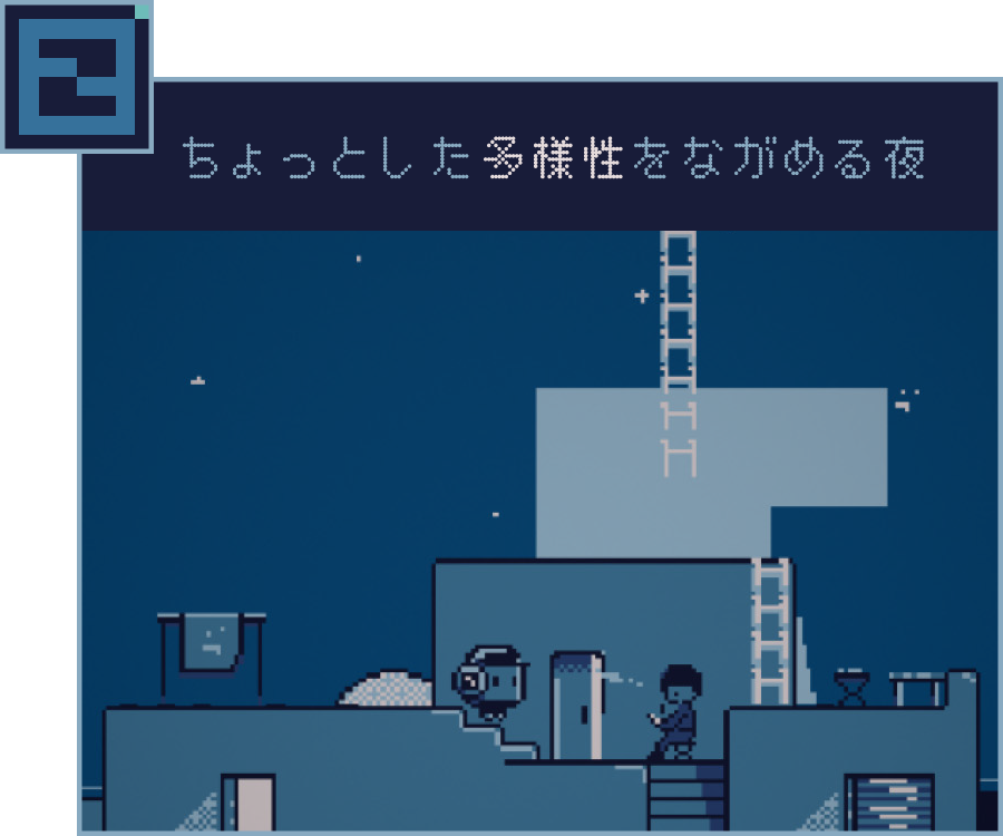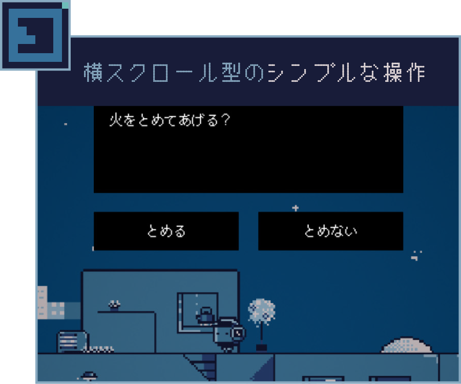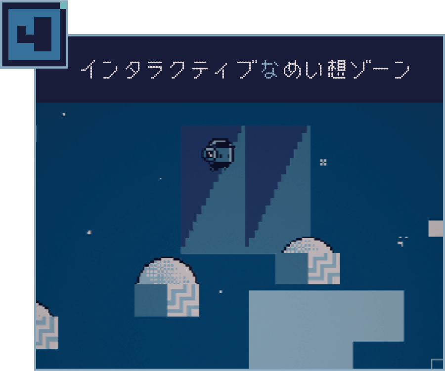 幅広い世代の人に手に取ってほしいこと、小さな愛らしさを表現できること、プレイヤーの想像の隙間を埋めずにイメージを抽象化できることから、ゲームビジュアルはピクセル画で作成しています。
