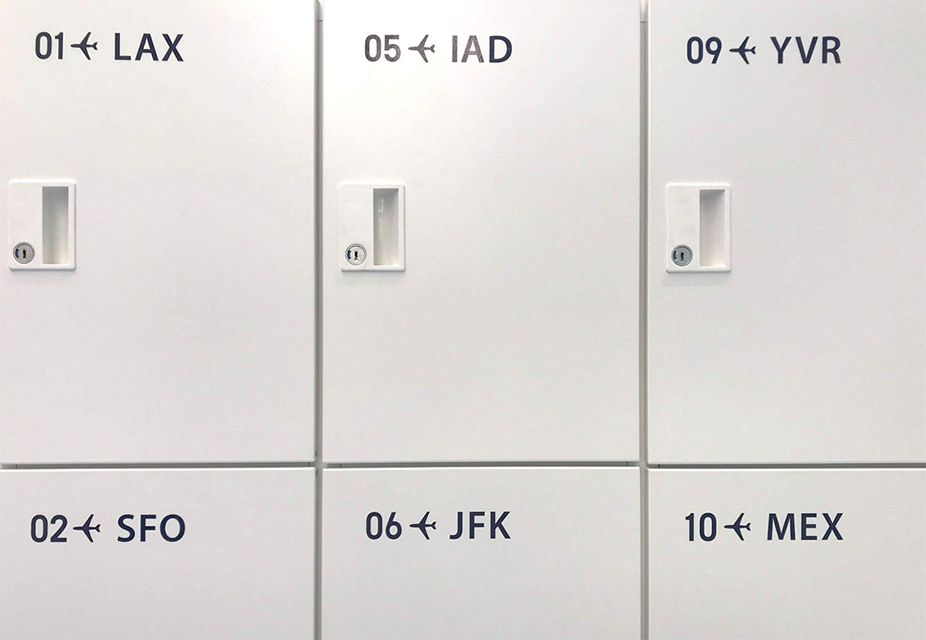 エントランスには、グラフィックや立体造形に加え、実は音による演出も。空港独特のざわめきやアナウンスをBGMとして流すことで、空港ならではのアンビエント(雰囲気)を再現しています。