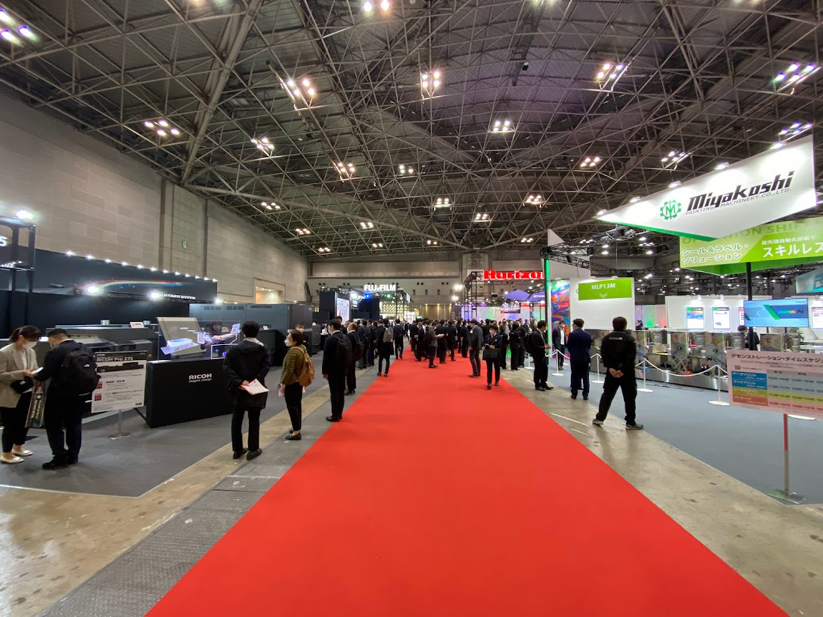 最新の印刷技術の世界へ導くデザイン要素をイメージできます。会場ではメインエントランスの写真を撮影している方も多く見られ、SNSにも多くの写真が拡散されていました。