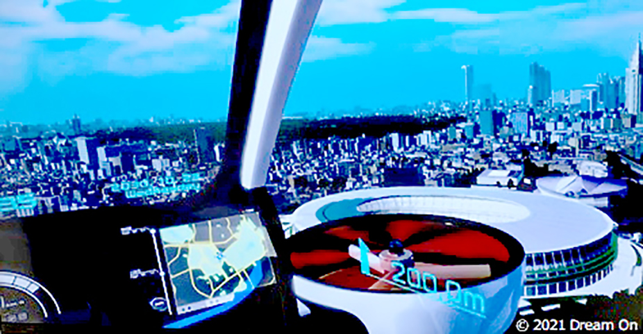 未来では空飛ぶクルマが移動手段の1つとなるでしょう。タクシーのように「ちょっとそこまで」の移動に空を飛ぶ。このVR体験機は未来のワンシーンを現在の東京の空で体験することができ、未来との距離を少し縮めてくれる1つのタイムマシーンとなります。