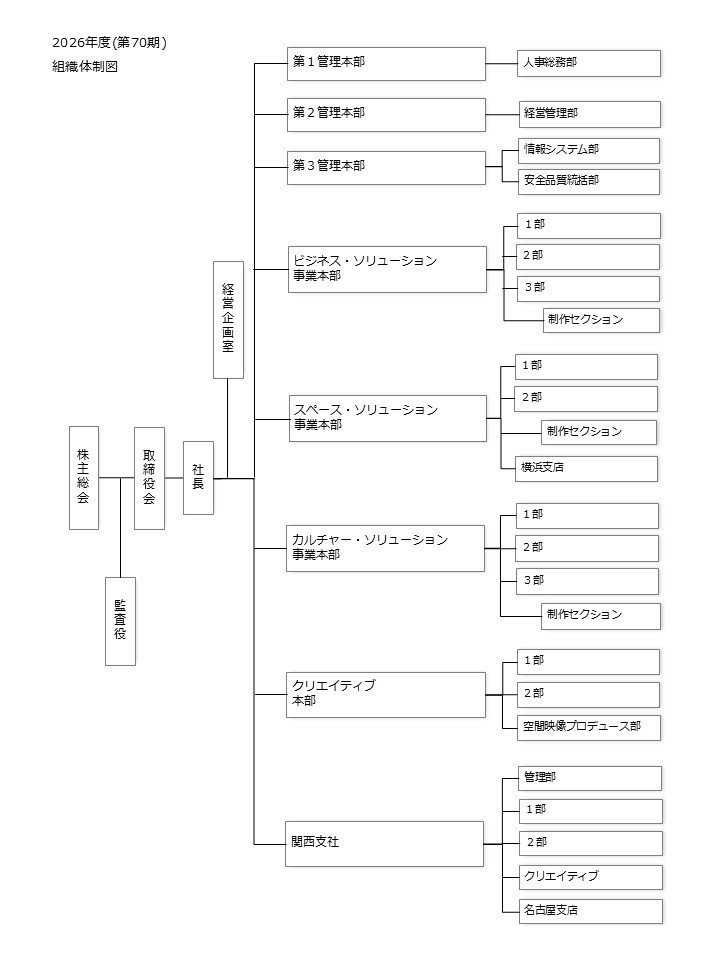 1.Planning, design, production, construction, operation and management of events 2.Planning, design, supervision, production and construction of interior and exterior decorations relating to commercial, cultural, sightseeing and amusement facilities as well as ambience enhancement 3.Planning, design, supervision, production and construction of signs 4.Research, consulting, planning, composition design, direction and production including audio, lighting and visual effects, relating to the operations listed above 5.Development, sale, leasing of displaying, staging and other equipment relating to the operations listed above and related import and export |