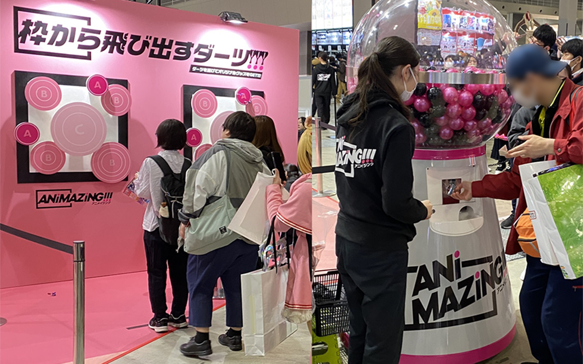作品紹介のみならず、ダーツやジャイアントガチャなどのアトラクション要素も加え、「楽しさ」が心に残るブランド体験を構築しました。