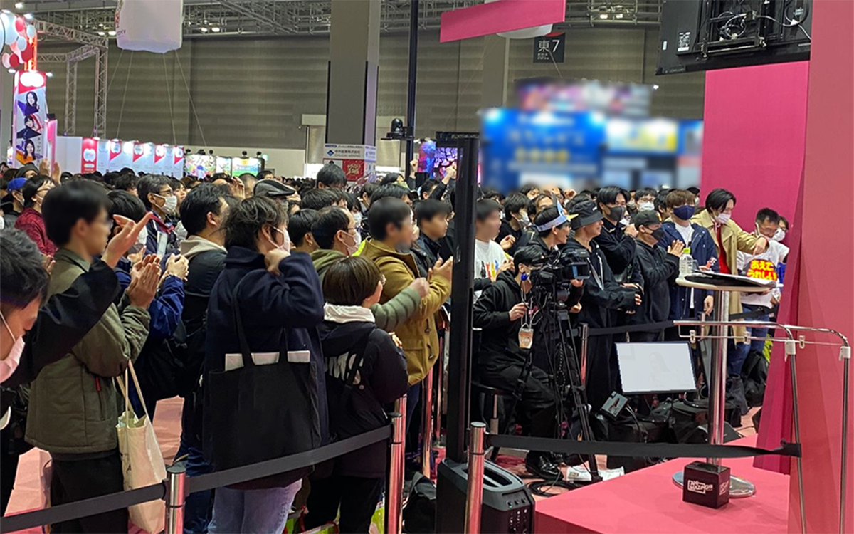 集客施策の一環として人気声優を招いてのトークイベントを開催し、ステージと観客との距離や目線を近づけることで、より親密な時間を演出しました。