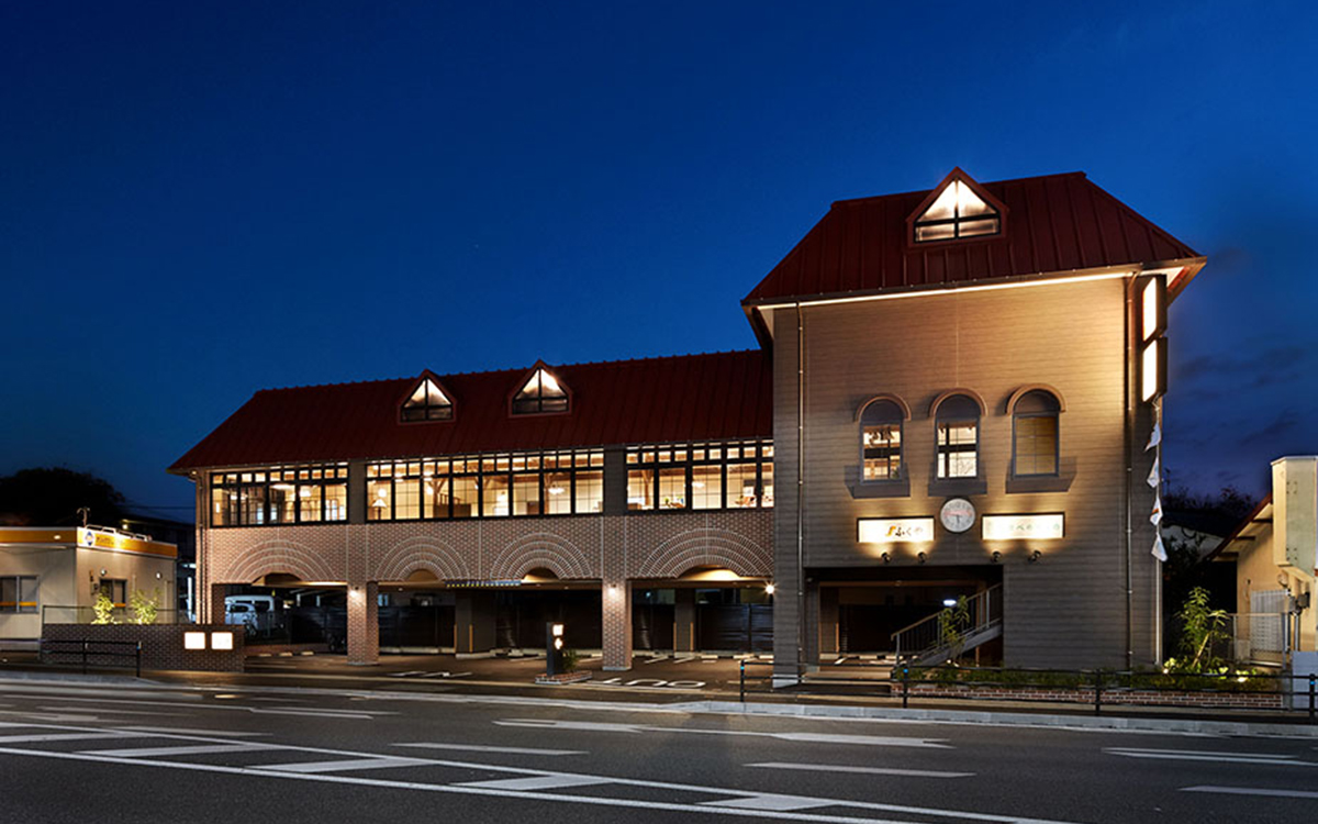 創業当時を感じさせるノスタルジックな外観デザインと照明計画。地域と調和し、永く愛される建物を目指しました。