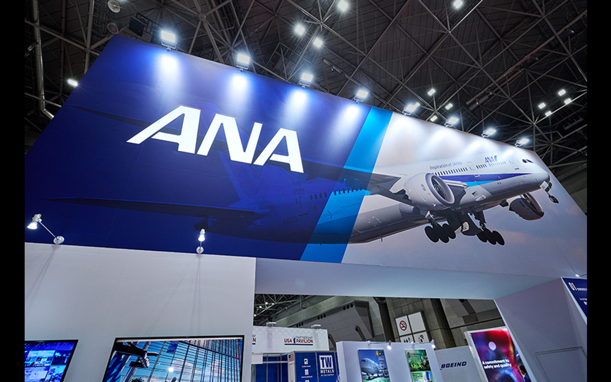 機体や社名ロゴを配した大型の壁面ビジュアルや尾翼をモチーフにしたモニュメントなどによって来場者からの注目を集めたほか、ANAの多種多様な事業をわかりやすく、楽しく体感できる展示構成にすることで、既存ファンはもちろん新たなANAファンづくりのキッカケを創出しました。
