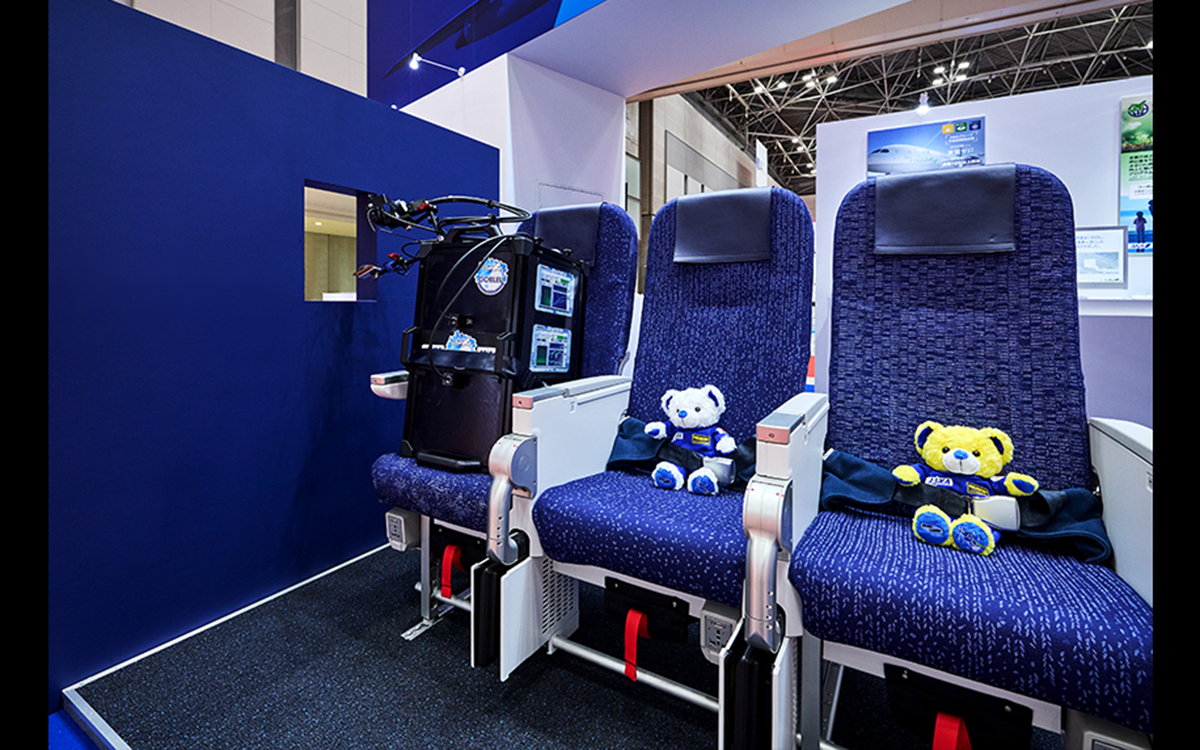 宇宙コーナーでは、座席の横に窓を模した造作物を設置。実際に機内にいるかのような体験を演出しました。