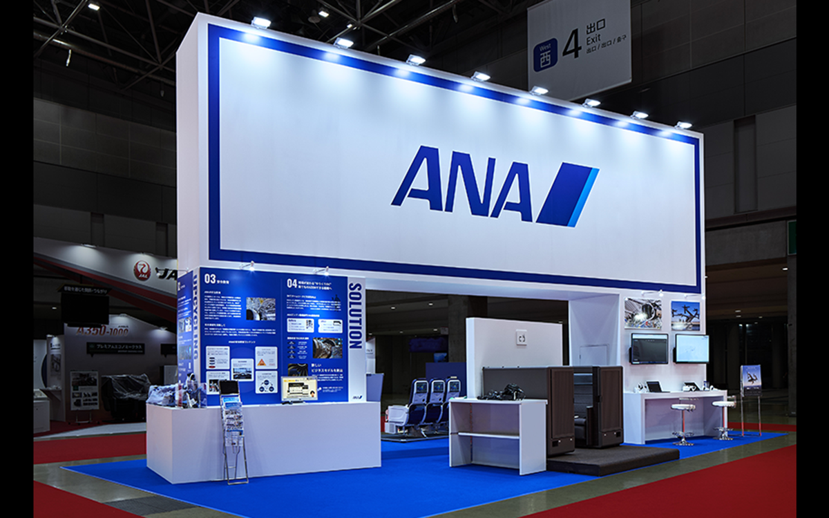 「ANAグループの事業の多様性と、それらが提供する未来」というテーマを様々な手法で紹介すること。「業界関係者」と「一般来場者」のどちらに対しても効果的な訴求を行うこと。主にこの2つの課題をベースに、ANAの取り組みをわかりやすく実感的に伝える展示プランと、競合他社との差別化を目的としたインパクトの強いブースデザインが求められました。