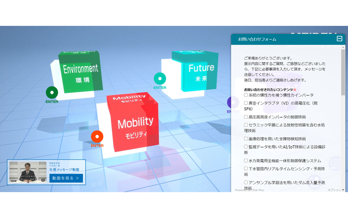 明電舎が2021年にオンラインで開催した新技術・新製品PRイベント。