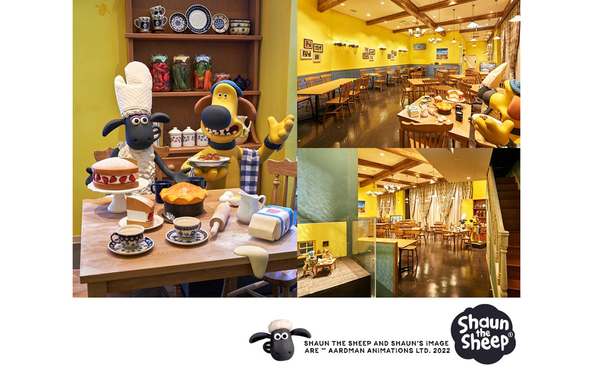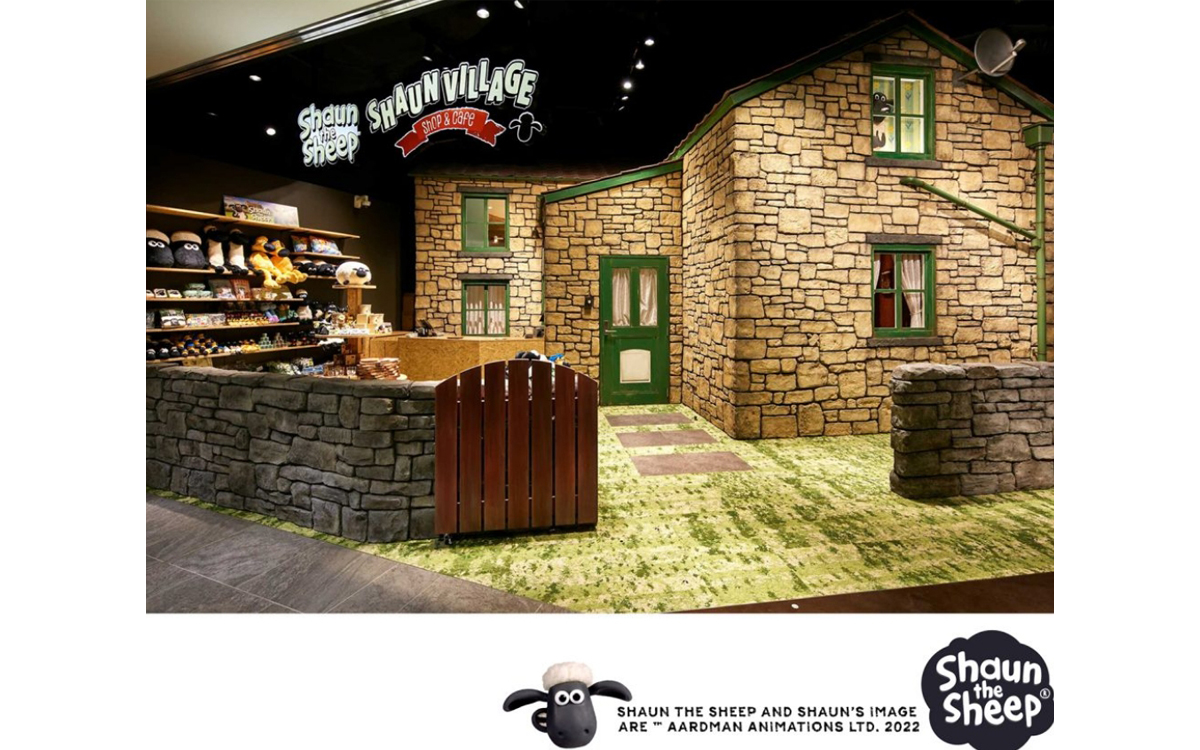 一コマずつ時間をかけて作るクレイアニメーション「ひつじのショーン」の世界を再現した、大型ショッピングセンター内の飲食・物販店舗。