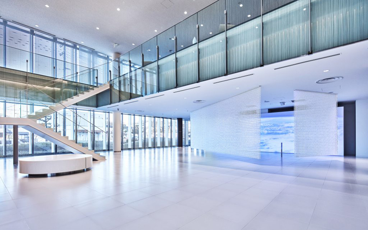 高度な小型精密加工・組立の技術を生かした製品でグローバルに展開を続ける「スター精密」の新本社エントランス。