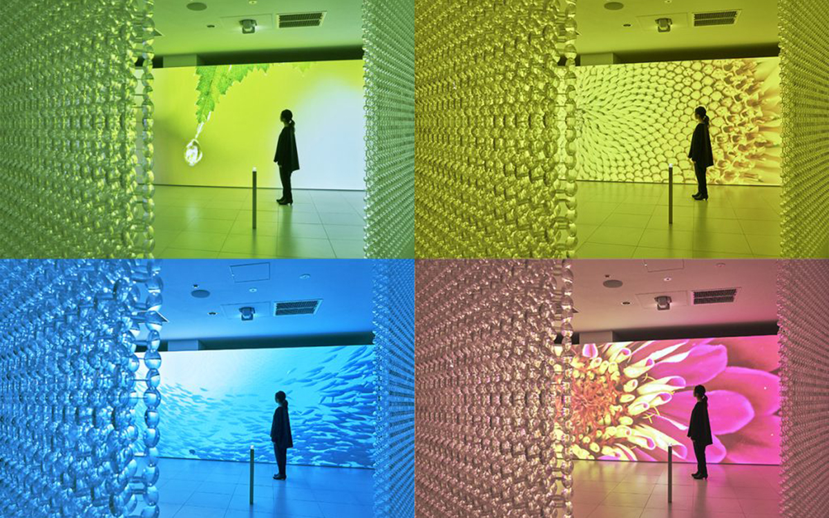 色鮮やかなマクロとミクロの世界が空間を彩り、訪れた人を不思議な世界へと引き込みます。