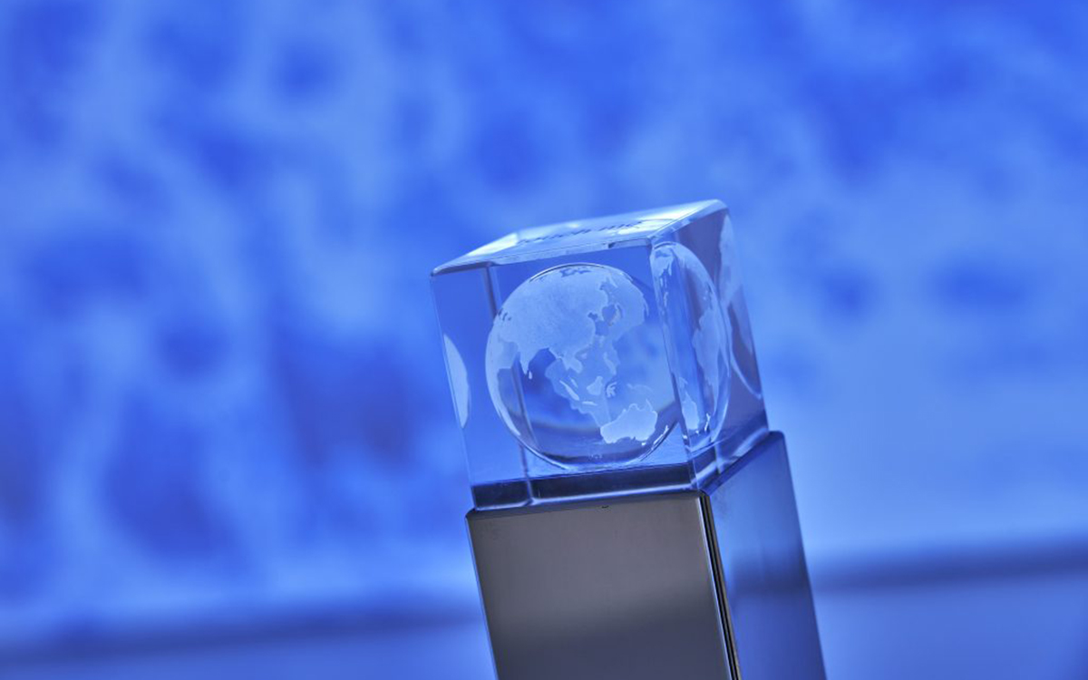 ガラスの地球に手をかざすとセンサーが反応し、スター精密のヒストリー映像が流れます。