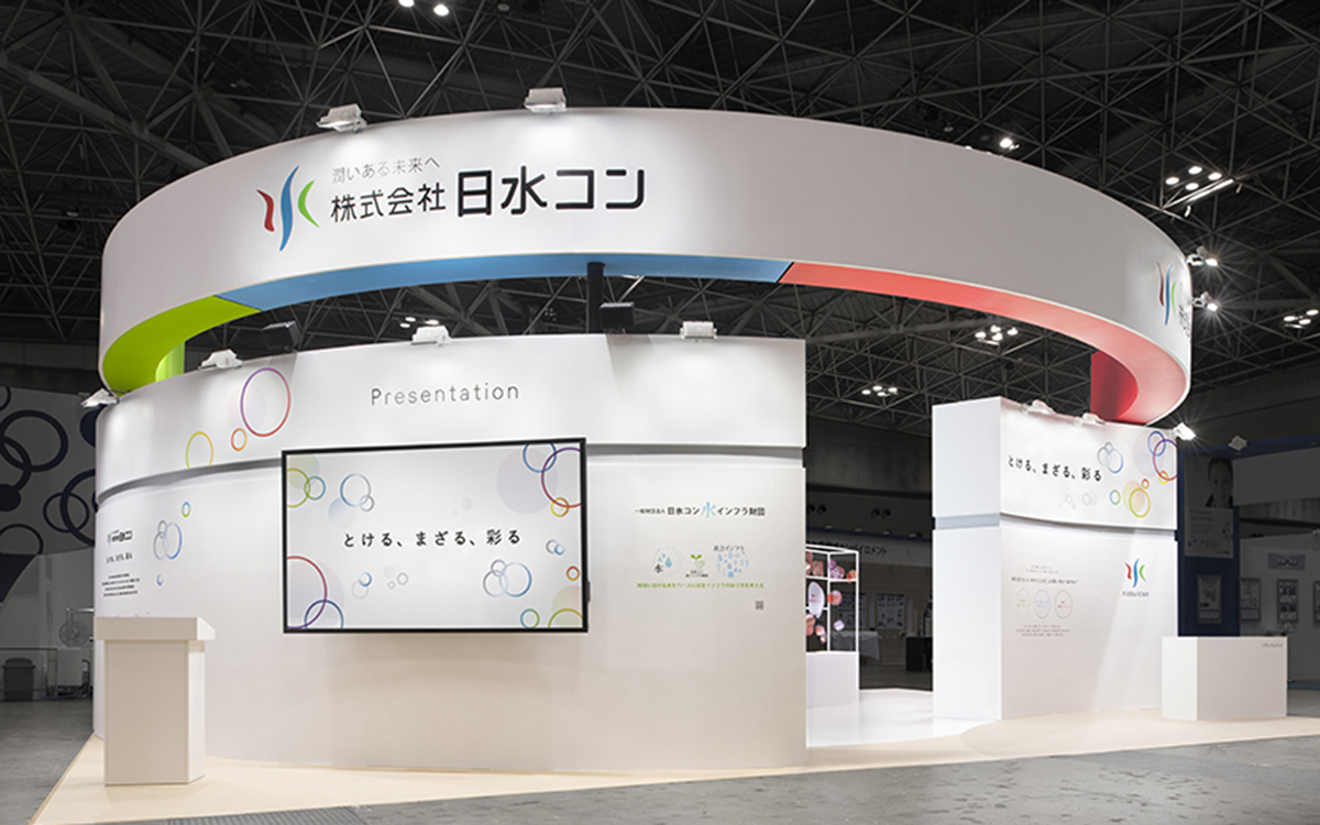 「下水道展’22」に出展した、水の総合コンサルティング企業「株式会社日水コン」のブース制作および各種プロモーションツール制作。