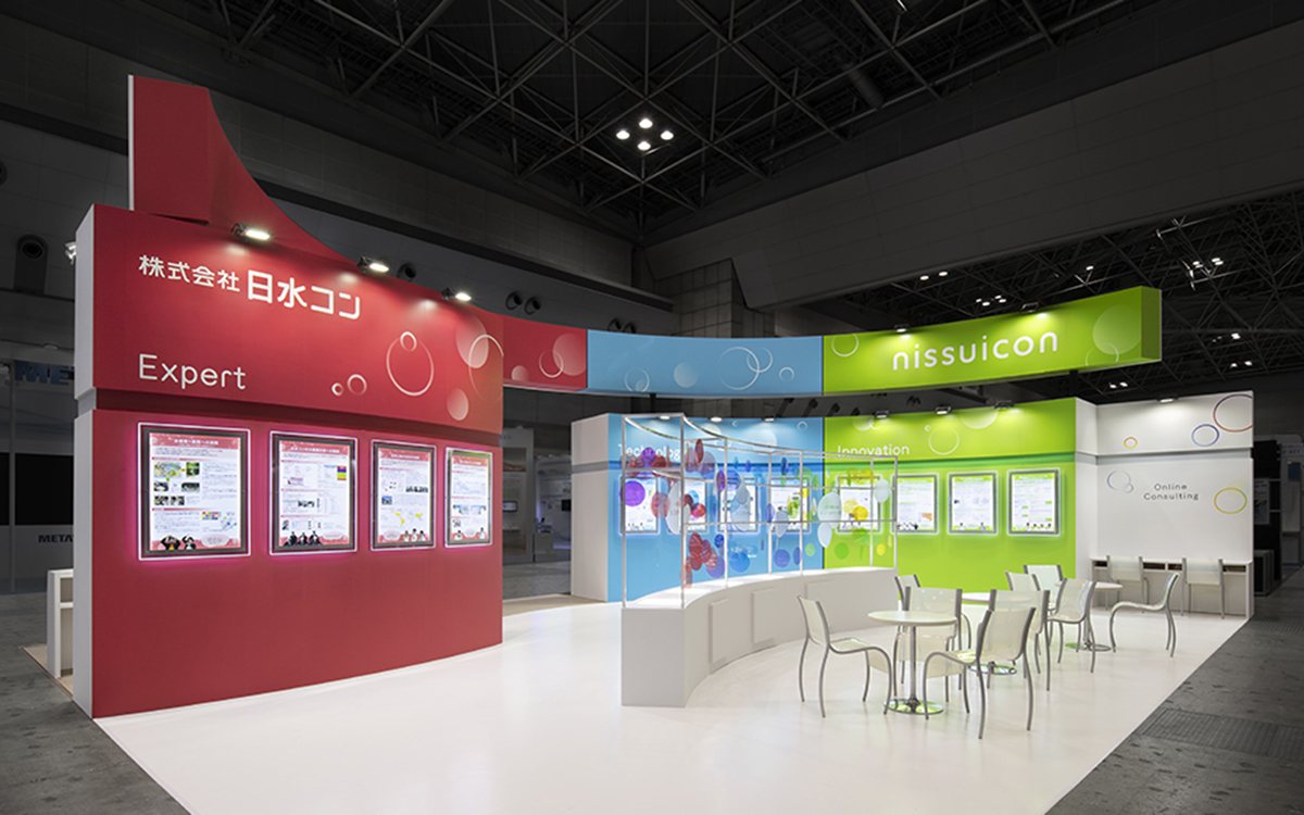 ブースに内に入ると雰囲気が一変し、日水コンの技術で彩られる鮮やかな未来のイメージに。